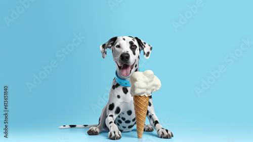 Niedlicher Dalmatiner isst ein riesiges Eis.
