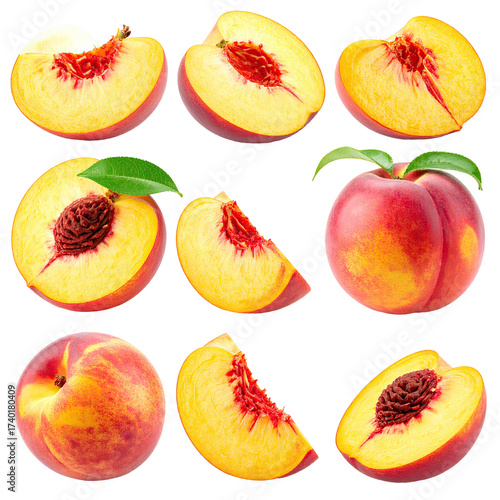 peach, slice, fruit, half, whole, juicy, fresh, vibrant, pink, yellow, red, seed, leaf, healthy, summer, sweet, delicious, food, nourishment, ripe, natural, isolated, background, grid, pattern, closeup, texture, vitamin, diet, organic, food photography, healthy snack, vitamin c, edible, cut, segment, poster, image, illustration, digital, high-quality