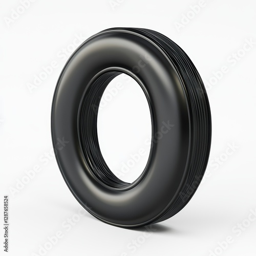 Number 0 made of sleek black rubber with realistic matte texture and soft flexibility isolated on a clean white background