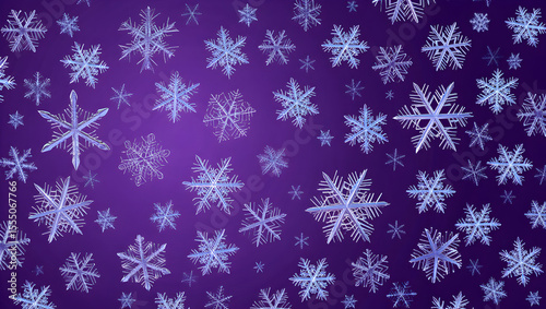 Numerous detailed blue and white snowflakes scattered across a gradient purple background