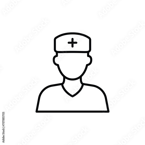 Nurse icon. Simple outline style. Medical assistant, male, man, medic, doctor, health, medicine, hospital concept. Thin line symbol. Vector isolated on white background. SVG.