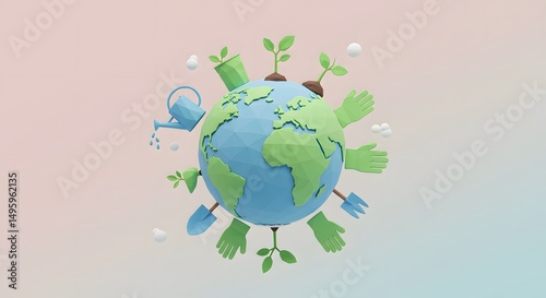Nurturing Our Planet A 3D Illustration of Sustainable Gardening and Environmental Care