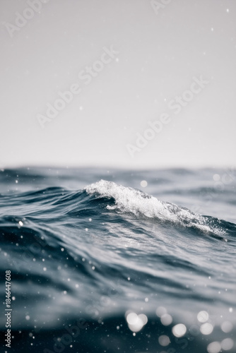 Ocean wave crest in soft light with shallow focus, peaceful sea landscape