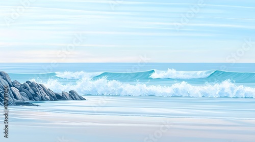 serene, relaxing, peaceful, seascape, wave, tranquil, photo, shore, horizon, graphic, calm, scenery, image, photo, digital artwork, foam, clear, coastline, rock, sandy, illustration, ocean, tropical, white, cliff, crashing, blue, sky, design, vector, vacation, water, nature, background, travel, summer, beach, beautiful, landscape, coast
