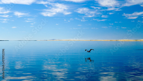 bird, symmetry, sea, flight, heaven, blue, nature, cloud, landscape, summer, horizon, travel, vacation, seascape