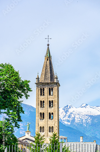 church, architecture, religion, building, sky, tower, travel, old, religious, history, europa, ancient, landmark, cross, gothic, historic, alps, alpine, aosta, italy