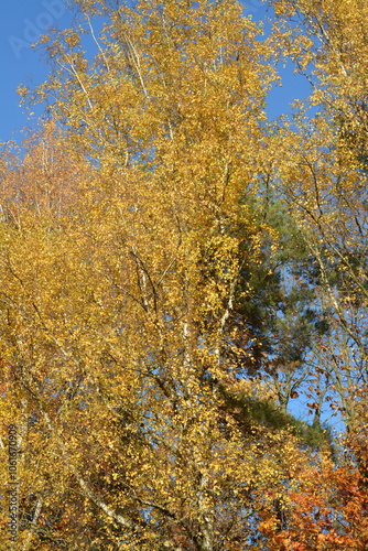 autumn, birch, tree, fall, forest, nature, leaf, yellow, tree, landscape, sky, leaf, season, foliage, colours, park, blue, birch, aspen, gold, orange, wood, colourful, tree branch, gold, green