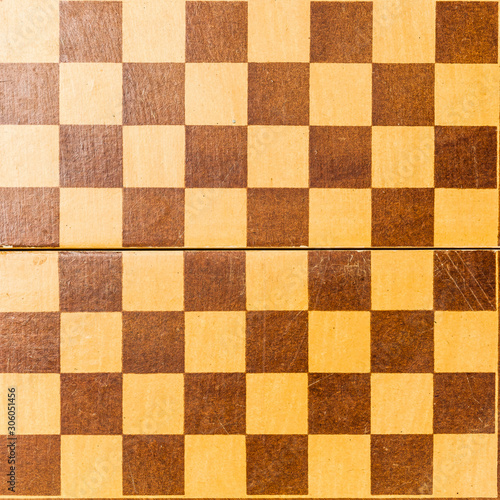 old Wooden chessboard top view