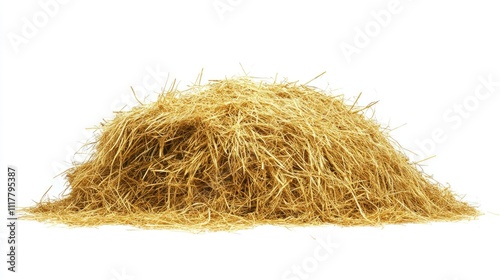 One hay heap, neatly arranged and isolated with clear texture and golden hues on white.