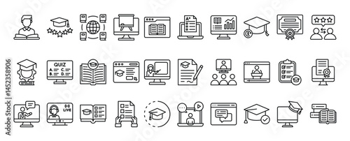 Online education icons depict learning