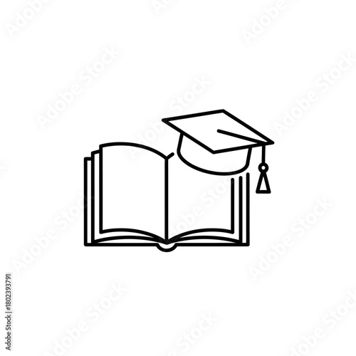 Open Book with Graduation Cap - Education and Academic Achievement Symbol.