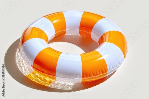 Orange and White Striped Inflatable Ring Floats in Water, Symbolizing Summer Fun and Vacation Getaways for Travel and Tourism Marketing : Generative AI