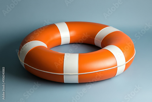 Orange life preserver on a blue background, symbolizing safety and rescue at sea.