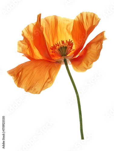 poppy, flower, orange, stem, plant, bloom, blossom, flora, floral, botanical, nature, cut-out, single flower, delicate, isolated
