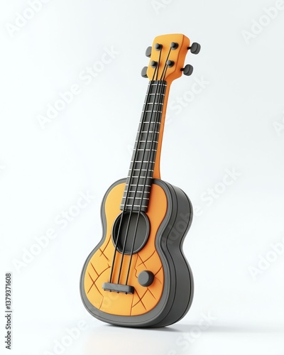 ukulele, three-dimensional, model, orange, musical, instrument, studio, photo, music, design, illustration, guitar, digital, isolated, object, art, background, graphic, music instrument, yellow, creative, cartoon, modern, cute, simple, flat, bright, image, poster, graphic design, minimal, minimalist, online, vector, product, digital artwork