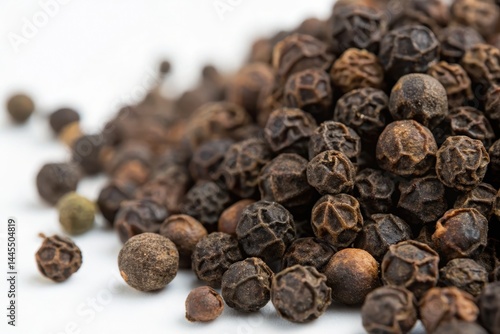 Organic black peppercorns clustered together, showcasing their natural texture and color.
