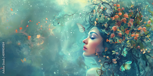 organic, metamorphic, face, head, fantasy, surreal, phantasmagoric, painted, painterly, art, artistic, illustration, symbolic, symbolism, woman, hair, face, make-up, fairy, glamour, magic, lip, flower, skin, head, eye, growth, development, beauty, natural, symbiosis, mechanical, clockwork, background, wallpaper, banner, poster, card