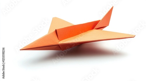 Origami-style folded paper airplane, isolated.