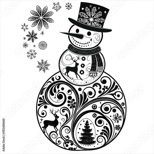 Ornamental Snowman Christmas Illustration