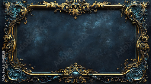 frame, decorative, ornate, gold, blue, border, design, antique, vintage, baroque, rococo, embellishment, pattern, textured, background, classic, luxury, elegant, style, art, accent, detail, flourishes, sculpture, metal, craftsmanship, intricate, artistic, ornamental, image, display