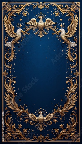 Ornate Gold Frame with Eagles on a Deep Blue Background