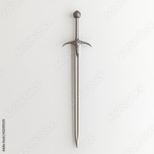 Ornate medieval sword isolated on white background.