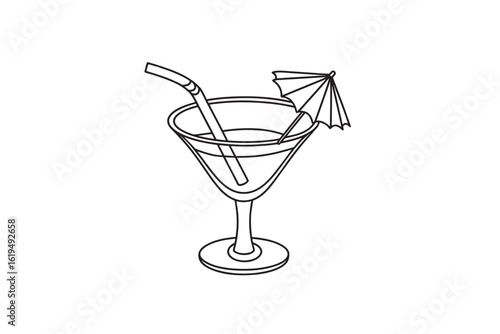 Outline drawing of a cocktail glass with a straw and umbrella perfect for coloring books menus and design projects representing summer vacation and relaxation