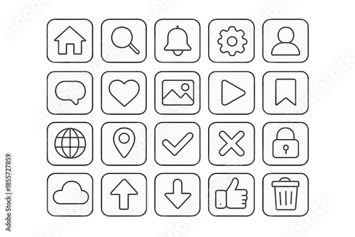icon, set, outline, interface, collection, app, navigation, home, search, notification, setting, user, chat, nubes, image, play, bookmark, globe, location, check, close, lock, cloud, upload, download, like, trash, buttons, graphic