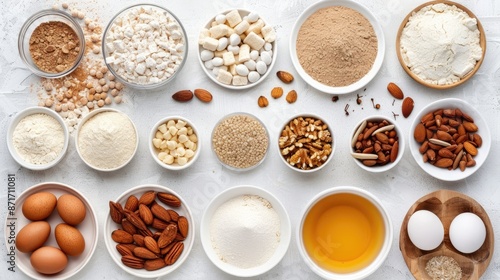 Overhead view of assorted baking ingredients