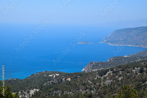 Panorama view on a clear summer day full of sun. Panorama of the island of Rhodes.