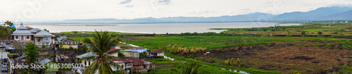 Panoramic photo of Lake Tondano and mountains as the background of Gorontalo Province