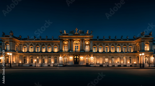 Panoramic view of the historic Palace de la Concorde in Temaille style. Illustration of popular places in the world.