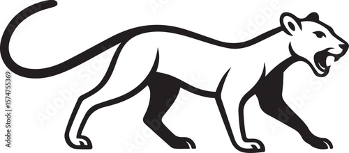 panther, cougar, jaguar, wildcat, big cat, animal, felino, predator, fierce, aggressive, powerful, strong, wildlife, nature, black-and-white, line art, graphic, logotype, vector, illustration, minimalist, modern, silhouette, symbol, design element, print, digital, poster, logo design, artwork, template, black, white
