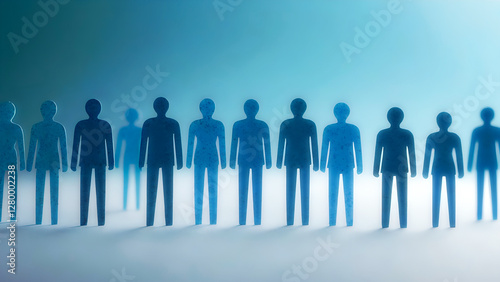 Paper craft of crowd representing diversity, uniformity or networking in abstract blue background