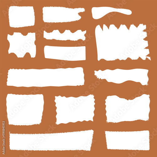 Paper shape with rips, torn edges and torn pieces in a rough grunge style, perfect for collage or sticker. Flat vector white paper stickers