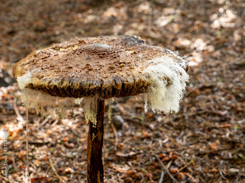 Parasolpilz Riesenschirmpilz mit Schimmel Sporen im Wald