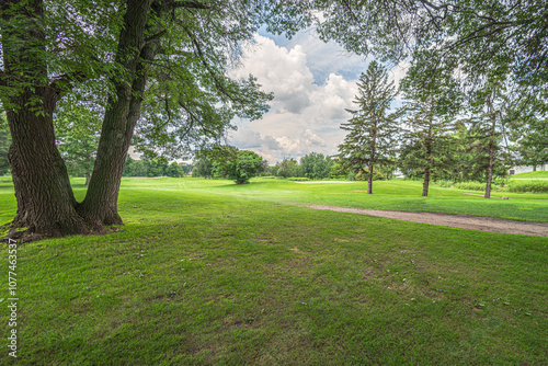 park, tree, grass, nature, landscape, tree, summer, spring, lawn, sky, leaf, meadow, golf, outdoors, day