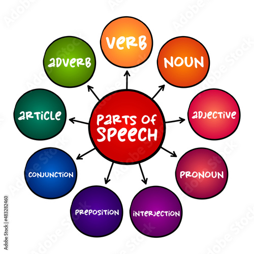Part of speech - category of words that have similar grammatical properties, mind map education concept for presentations and reports