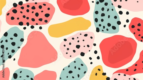 pattern with pastel background in the style of a 1970's handdrawn illustration