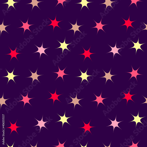 Pattern with stars on a purple background. Vector illustration with abstract shapes. For wrapping paper, fabric, decorative work, scrapbooking.
