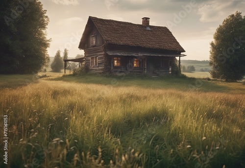 Peaceful Landscapes of a Farmhouse in the Middle of a Fields