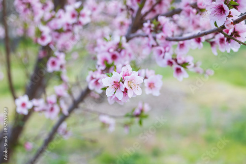 Peach tree blossoms close-up