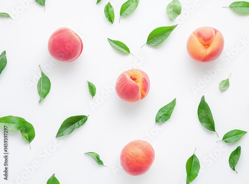 peach, leaf, summer, fruit, still, life, minimalism, white, background, green, photo, food, nature, fresh, juicy, composition, design, aesthetic, clean, simple, elegant, natural, organic, vibrant, bright, image, visual, art, style, mood, commercial, product, marketing, branding, closeup, texture, colours, palette, detail, styling