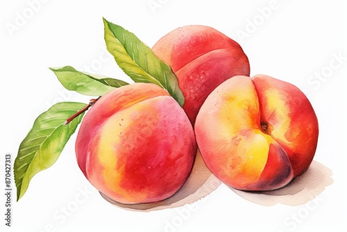 peaches in watercolor drawing isolated on white background