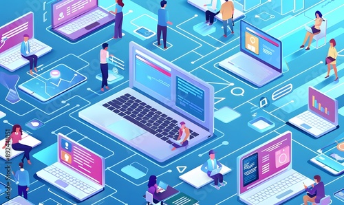 network, connection, people, digital, technology, online, connectivity, communication, computer, device, cyberspace, collaboration, teamwork, global, connected, interaction, virtual, social, earth, web, datum, information, cloud, wireless, mobile, manpower, laptop, desktop, screen, keyboard, mouse, software, platform, interface, user, innovation, progress, future, isometric, illustration