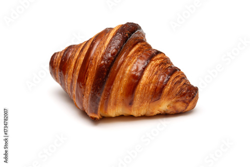 Perfectly glazed butter croissant isolated on a white background