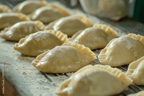 Perogies Close Up: Homemade Potato Cheese Pierogi, Traditional Polish Dinner Dish