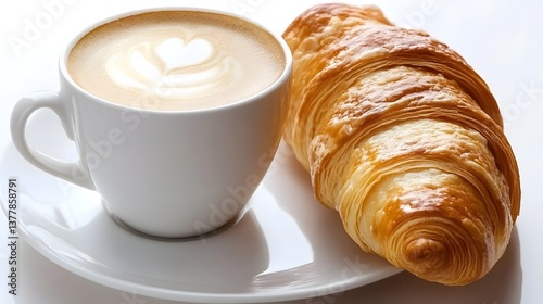 person, enjoying, italian, cappuccino, fresh, croissant, breakfast