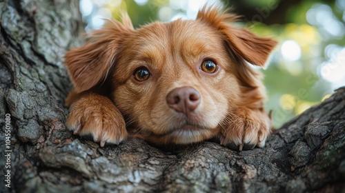 Pet interactions with trees featuring pets climbing, resting, or playing around trees. Emphasizing natural behavior and tree interaction. Ideal for nature and pet lovers.
