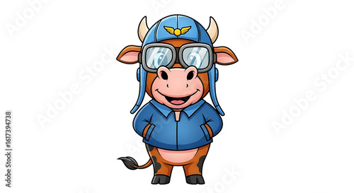 Photo of cartoon cow wearing a pilot outfit isolated on transparent background